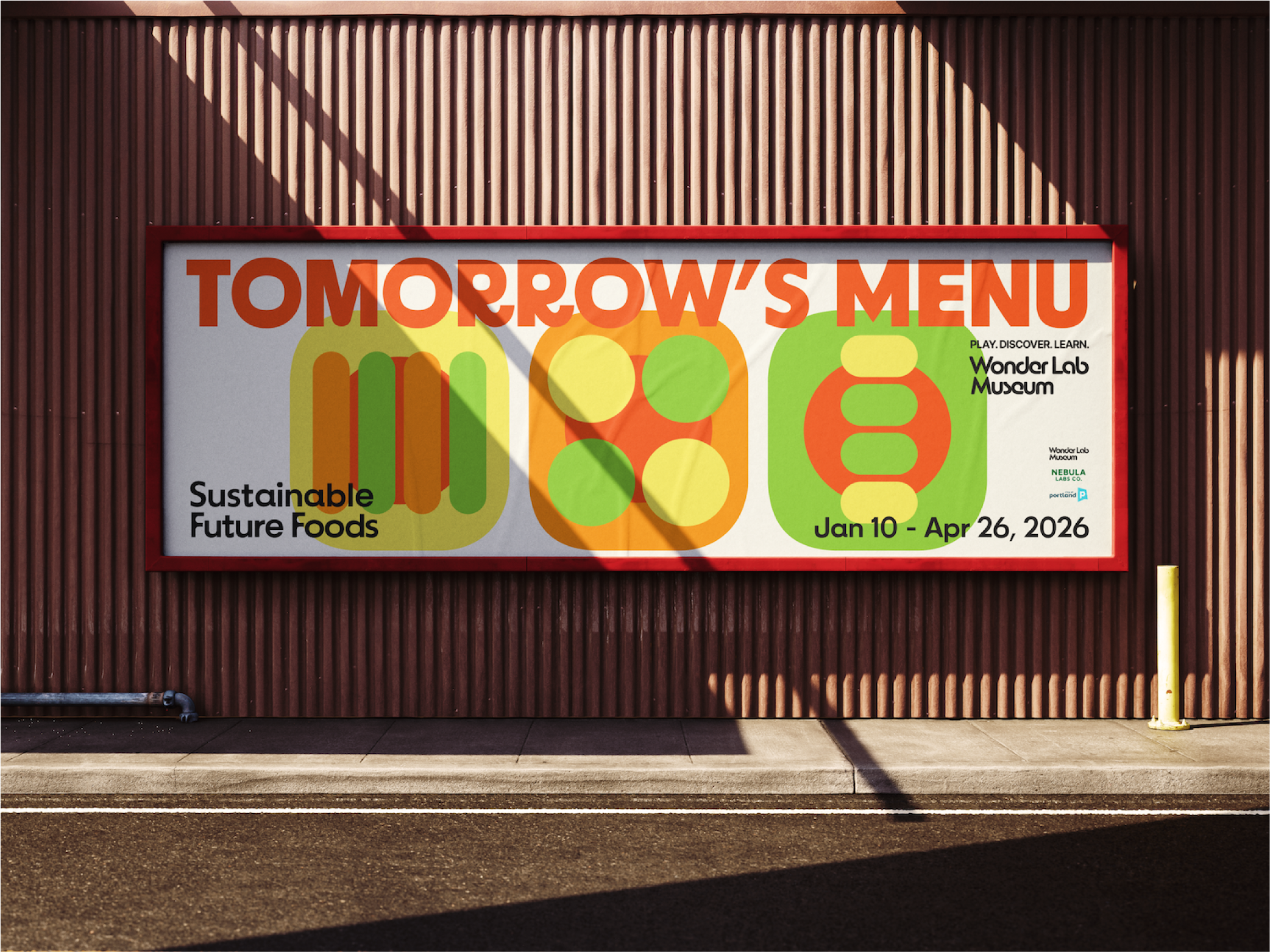 Tomorrow’s Menu: Sustainable Future Food is a conceptual exhibit developed for the imagined Wonder Lab Museum in Portland. It explores how vertical farms, cultured meat, and emerging food technologies could shape a more sustainable future. The visual system is designed to feel bright, approachable, and science-forward, creating an inviting experience for kids and families while grounding the subject in clarity and curiosity.
